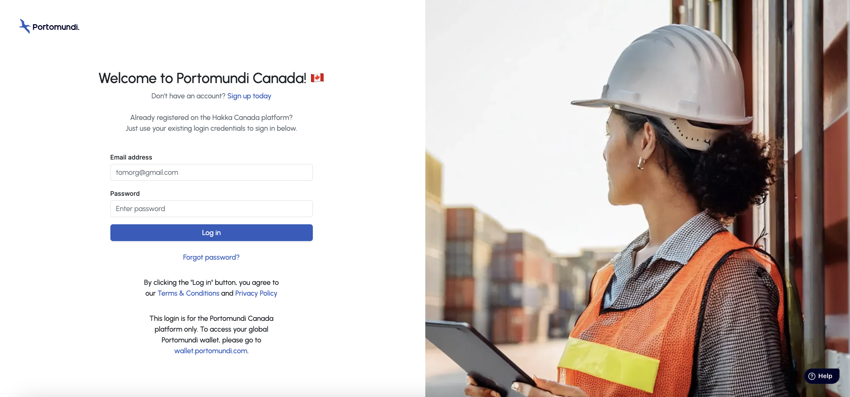 - The first one is for your dedicated Portomundi Canada account (https://canada.terminals.portomundi.com/) where you can manage your orders.