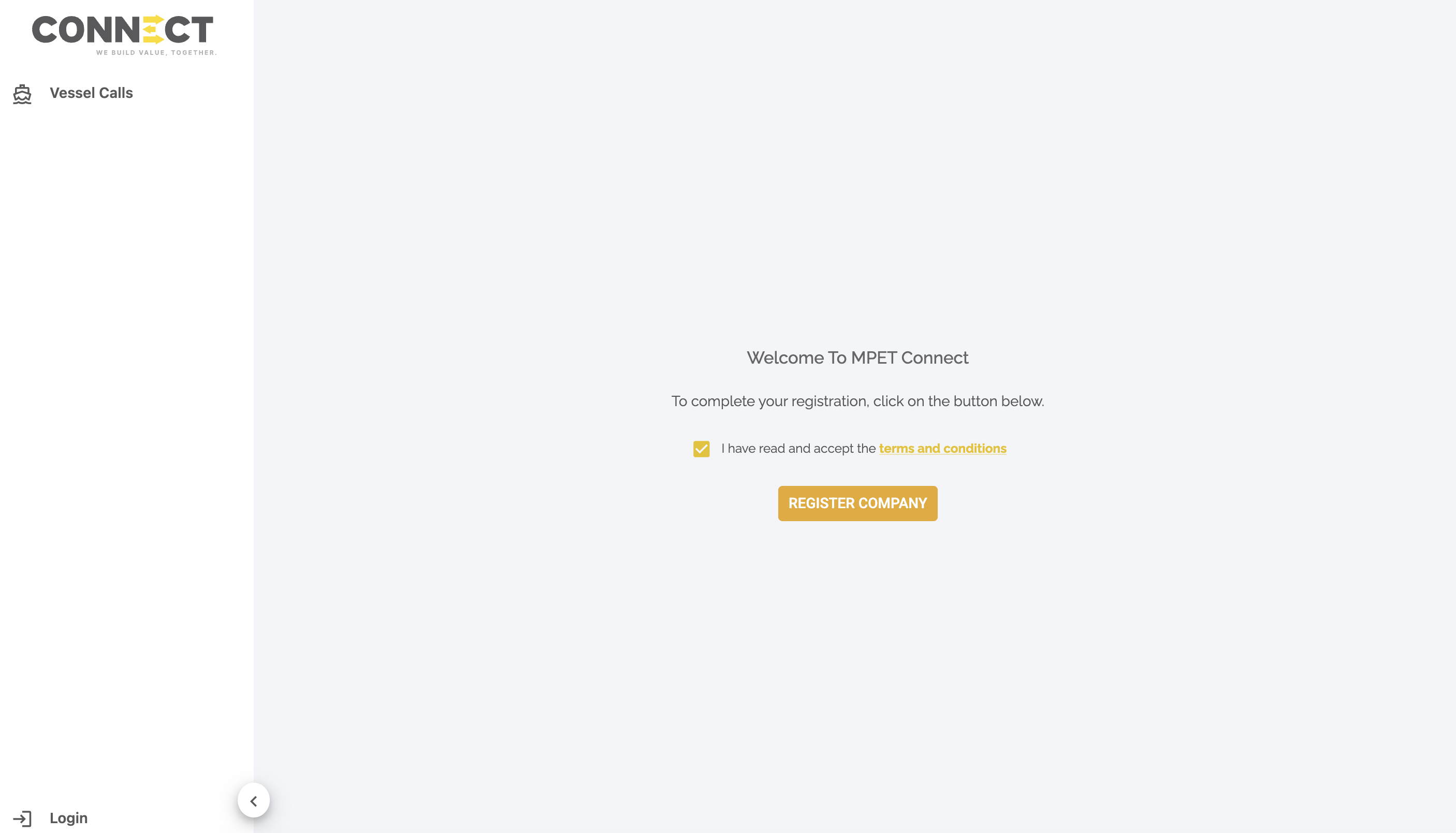 If you would return to the MPET terminal page on the Portomundi Terminals module, the blue button now displays a link to the login page of the MPET Connect application (instead of the Create MPET Connect account button from before).